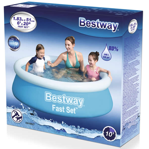 Bestway Fast Set Swimming Pool, 6ft for Kids and Adults